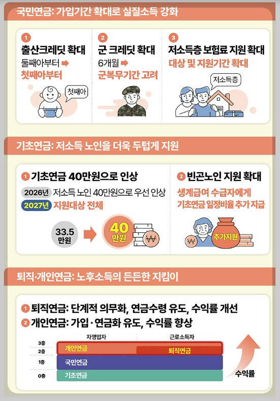 이번 개혁안은 국민연금뿐만 아니라 기초연금, 퇴직연금, 개인연금 등 다층 연금체계 전반의 구조개혁을 포함합니다. 이를 통해 국민들의 안정적인 노후 소득 보장을 실현하고, 연금 재정의 지속 가능성을 확보할 것으로 기대됩니다.