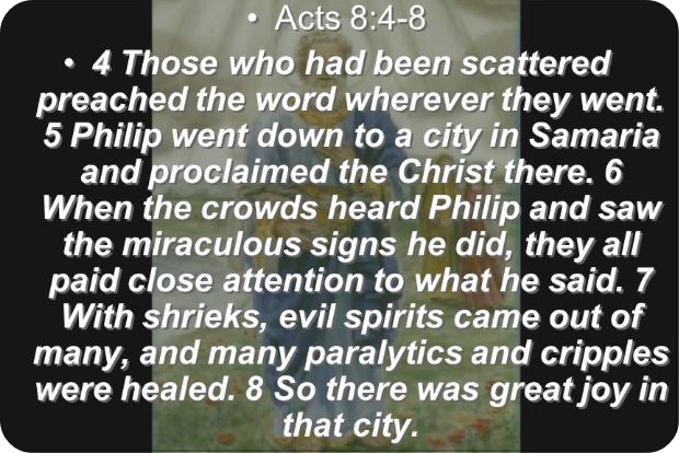 4절 그 흩어진 사람들이 두루 다니며 복음의 말씀을 전할새