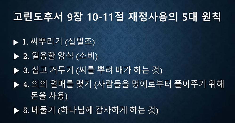 2. 크리스천의 재정사용 5대 원칙 (이정훈 목사님)
