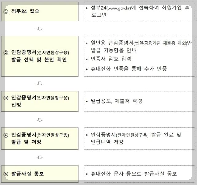 - 발급 완료 : 인감증명서 발급 완료 후 휴대전화 문자로 통보