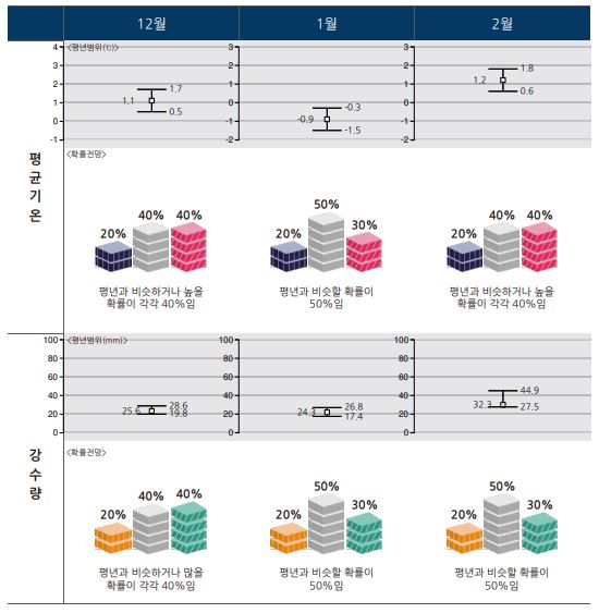 (월평균기온) 평년 (0.6~1.8도)과 비슷하거나 높을 확률이 각각 40%이며,