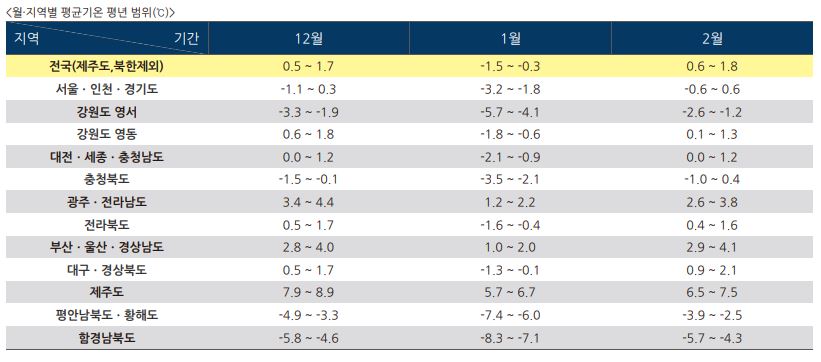 (월평균기온) 평년 (0.5~1.7도)과 비슷하거나 높을 확률이 각각 40%이며,