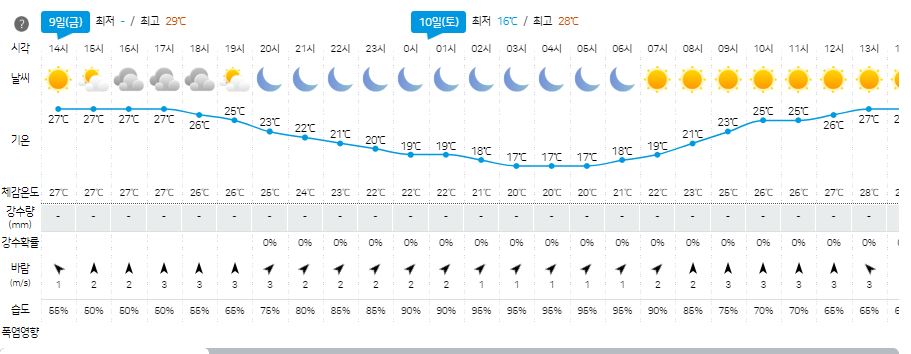 출처 : 기상청 날씨누리 (더 상세한 날씨 정보) 단기예보 - 기상청 날씨누리 (weather.go.kr)