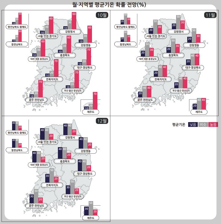 3. 10월 11월 12월 월별 지역별 평균 기온 확률 전망