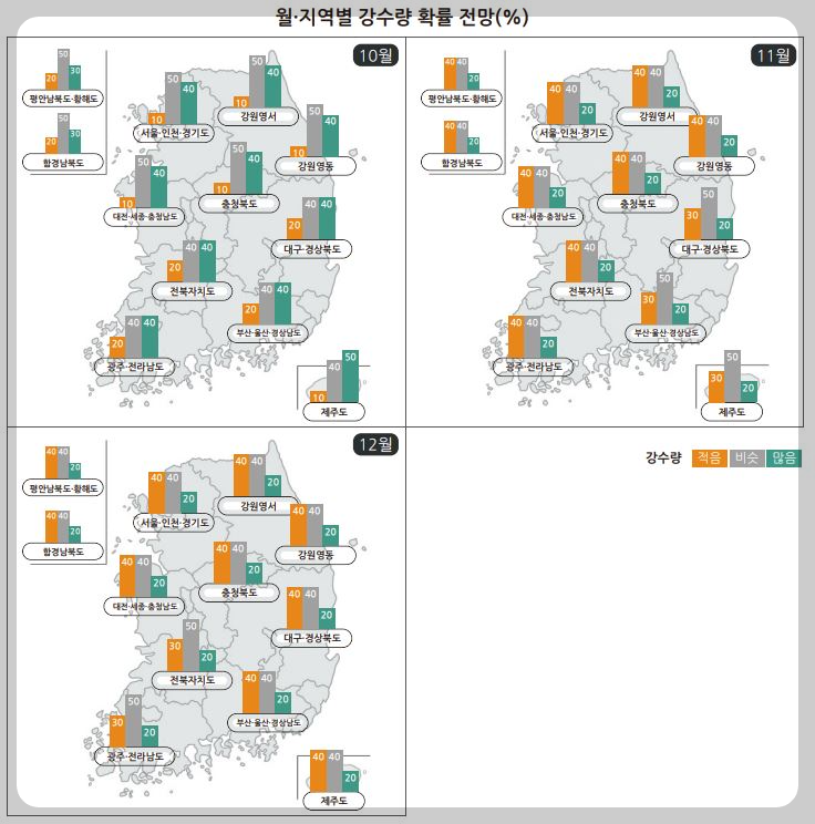 4. 10월 11월 12월 월별 지역별 강수량 확률 전망