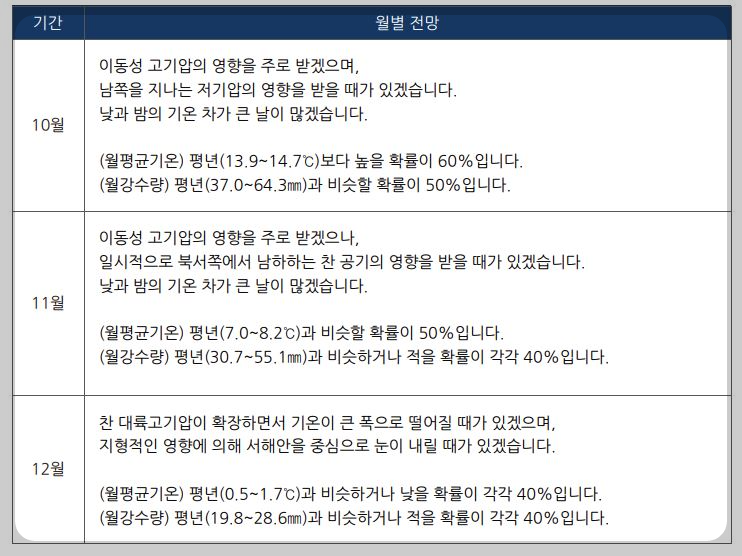 1. 10월 11월 12월 예보 정리