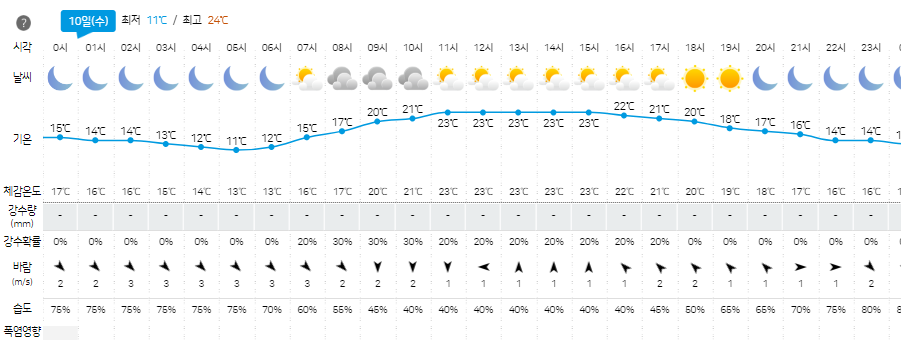 5월 10일 날씨 예보 전망 (전국 가끔 구름 많음)