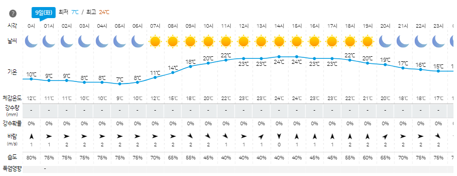 5월 9일 날씨 예보 전망 (대체로 맑음)